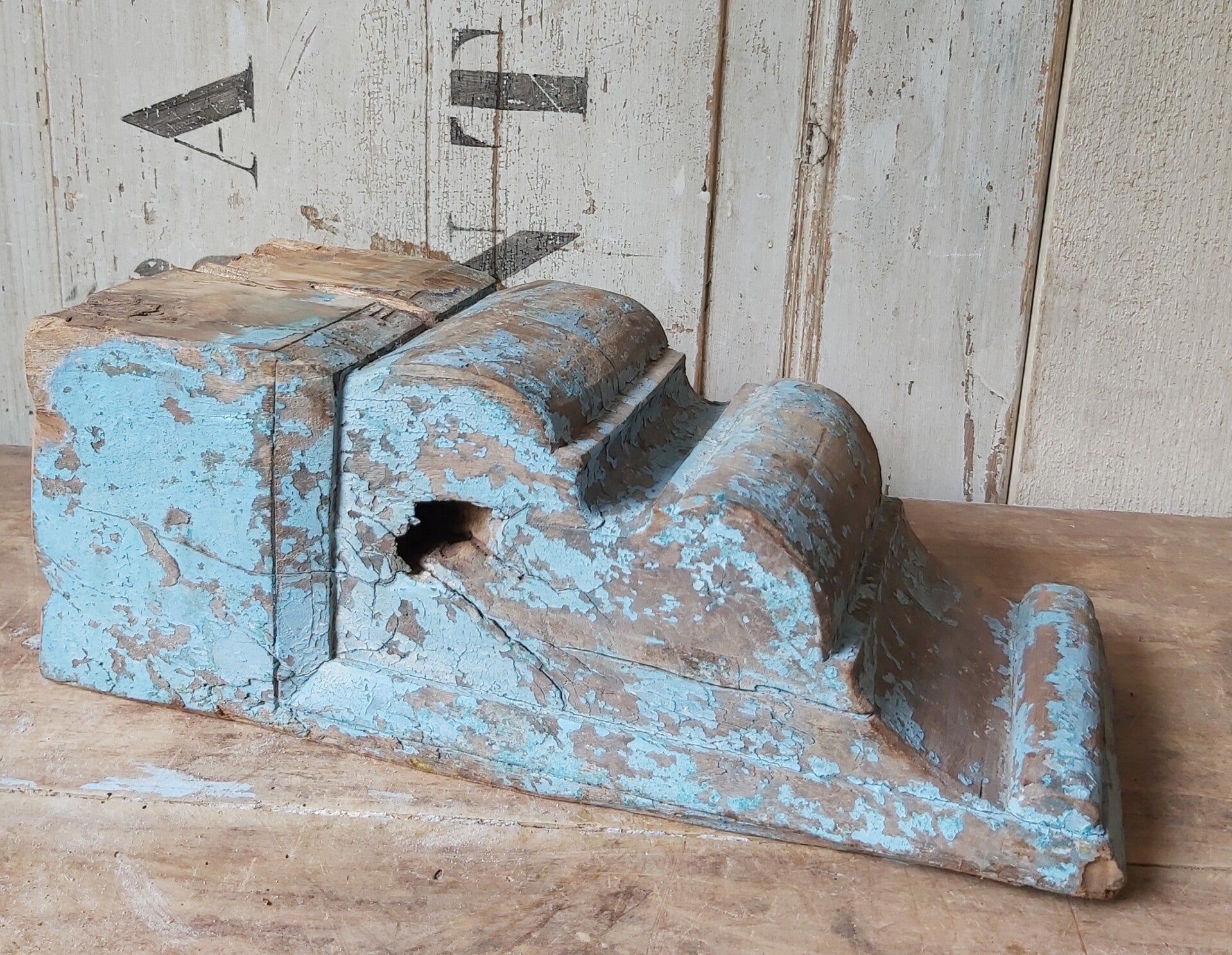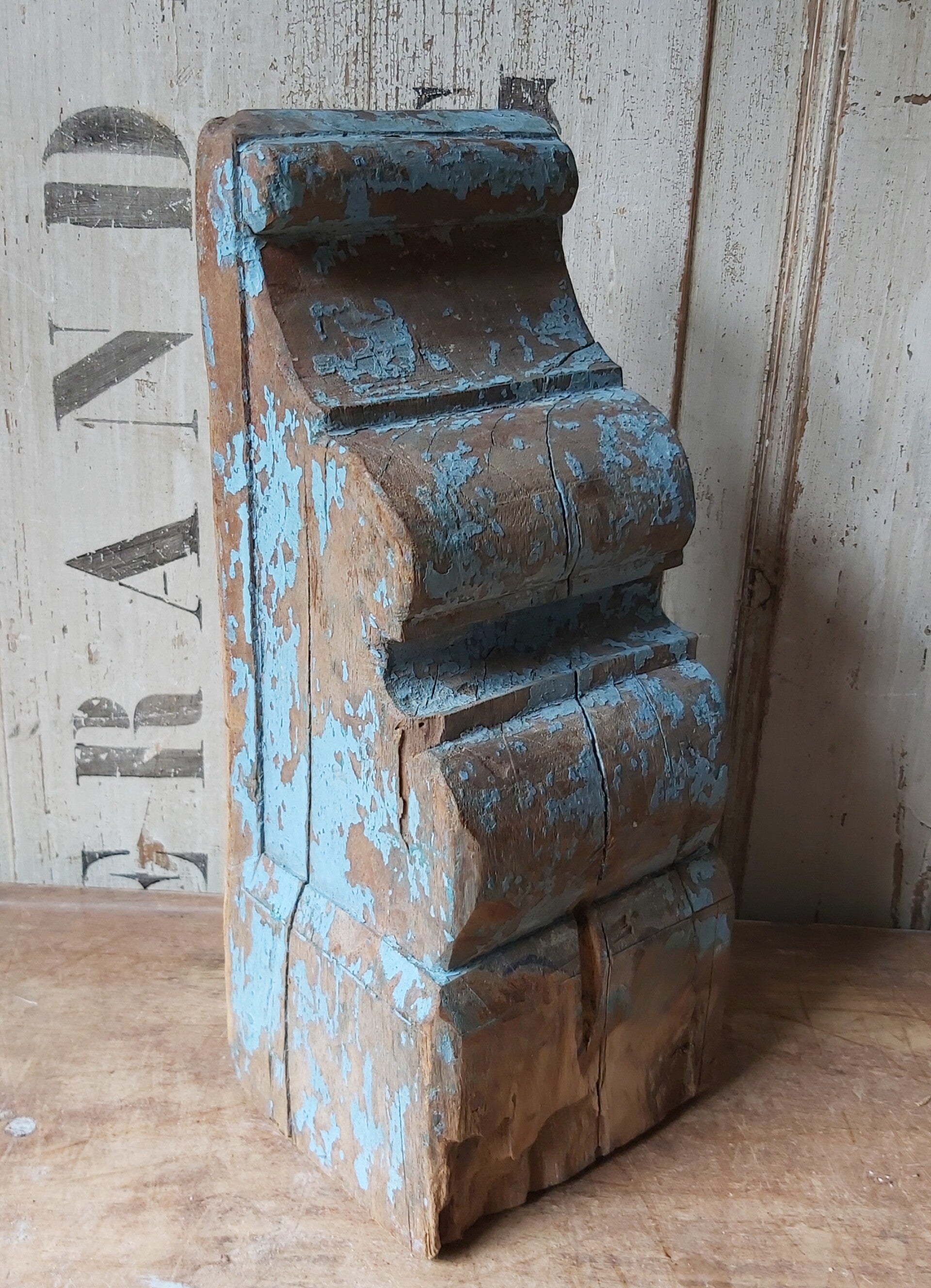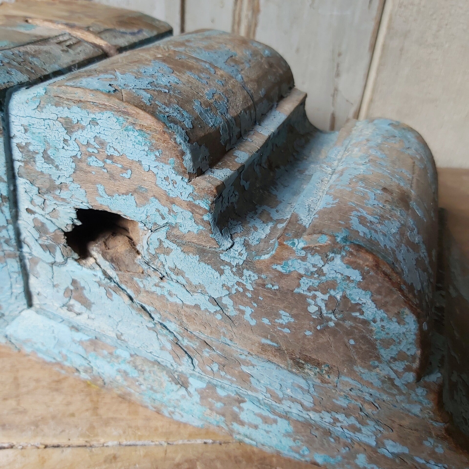 Oud ornament met prachtige kleur blauwe verf.
