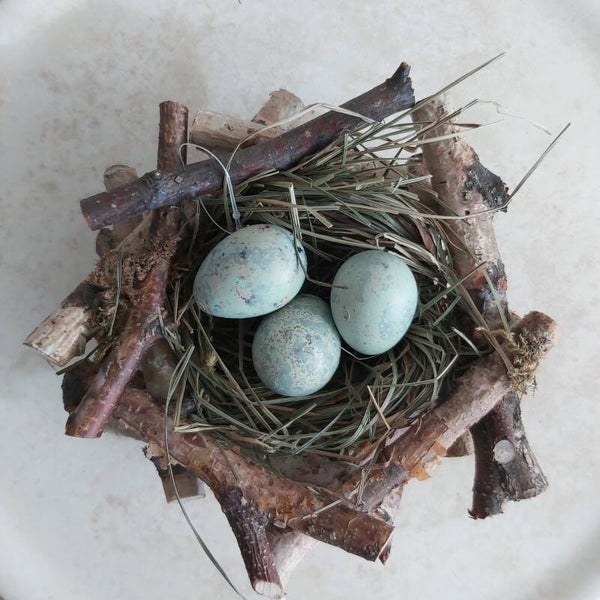 Lief vogelnestje incl. 3 groenige kwartelneitjes.