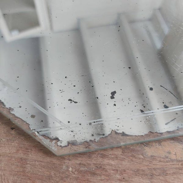 Oude spiegel bedoeld om liggend te gebruiken om een object er op mooi uit te laten komen.