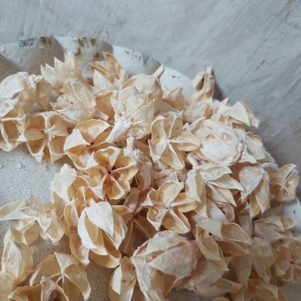 Gedroogde crémekleurig hibiscus knopjes.