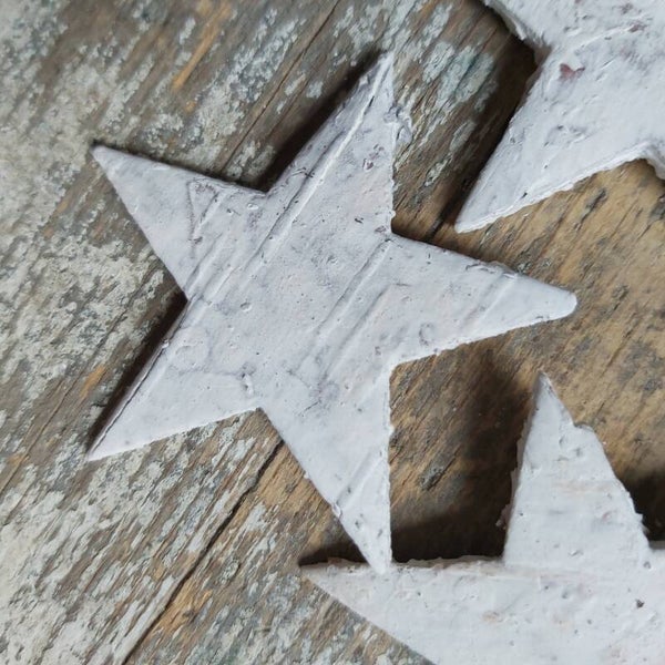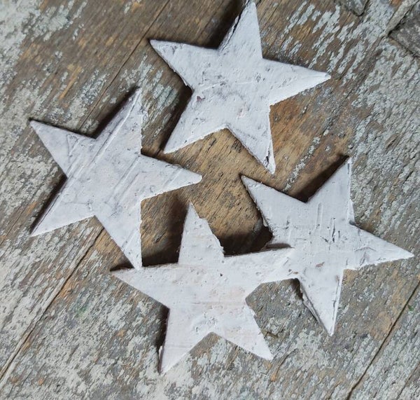 Sterretjes uit schorsbladen gesneden.