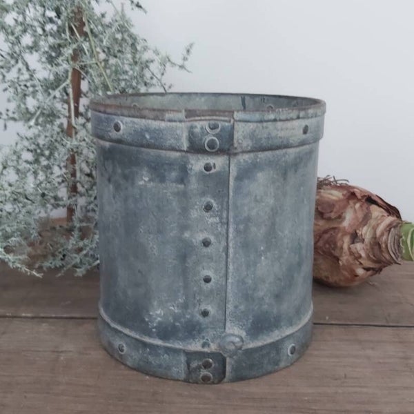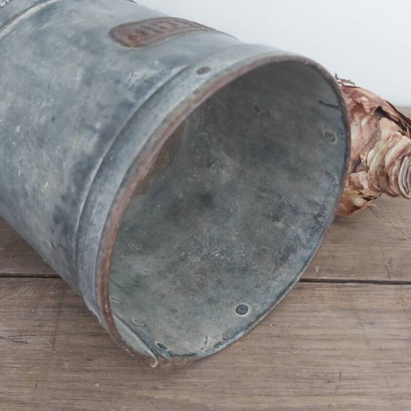 Oude genagelde vrij zware Franse maatpot,met mooi embleem.