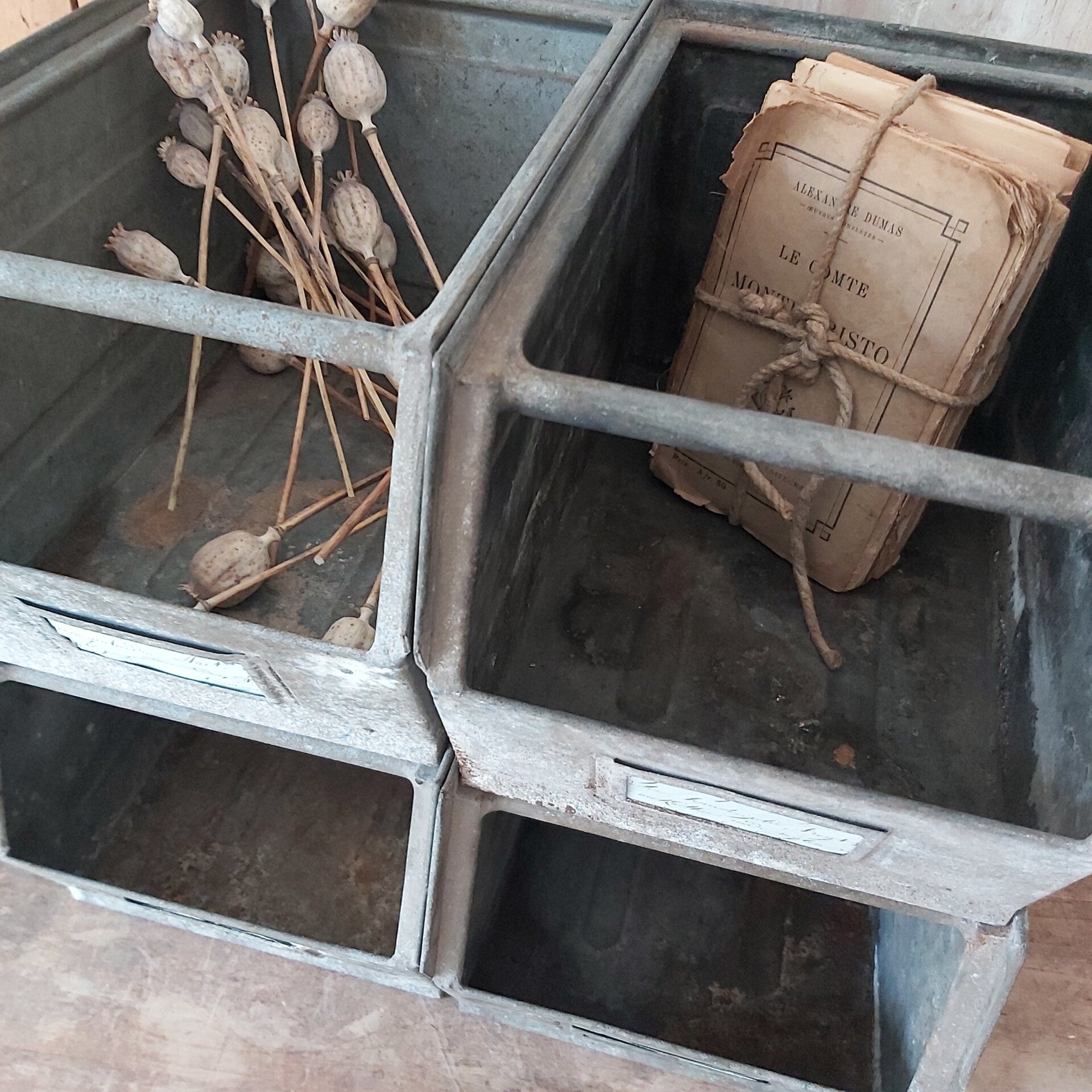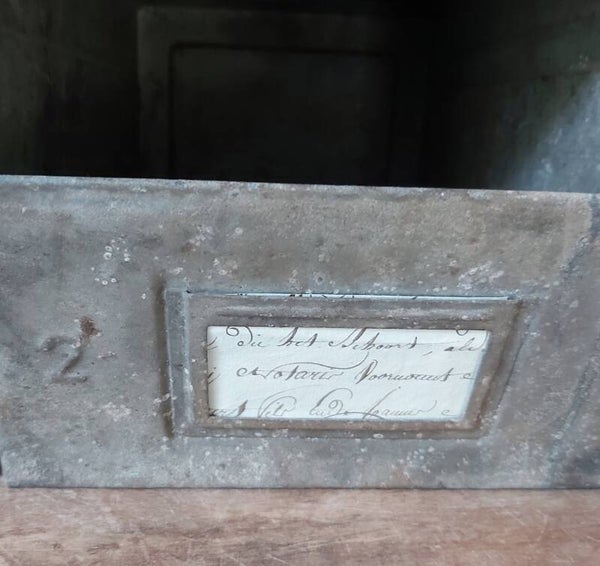 4 oude zinken archiefbakken.