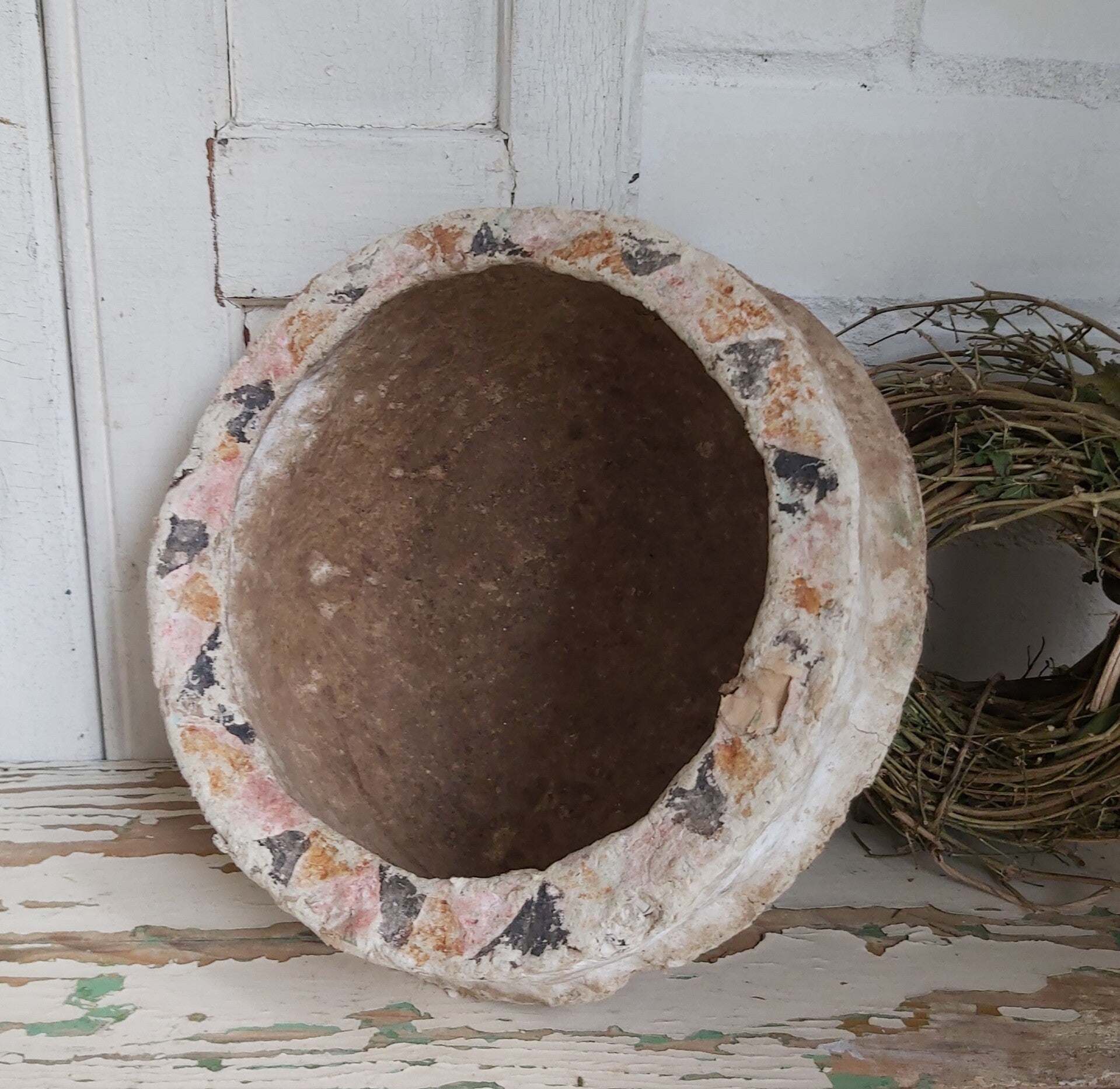 Oude papier maché schaal.