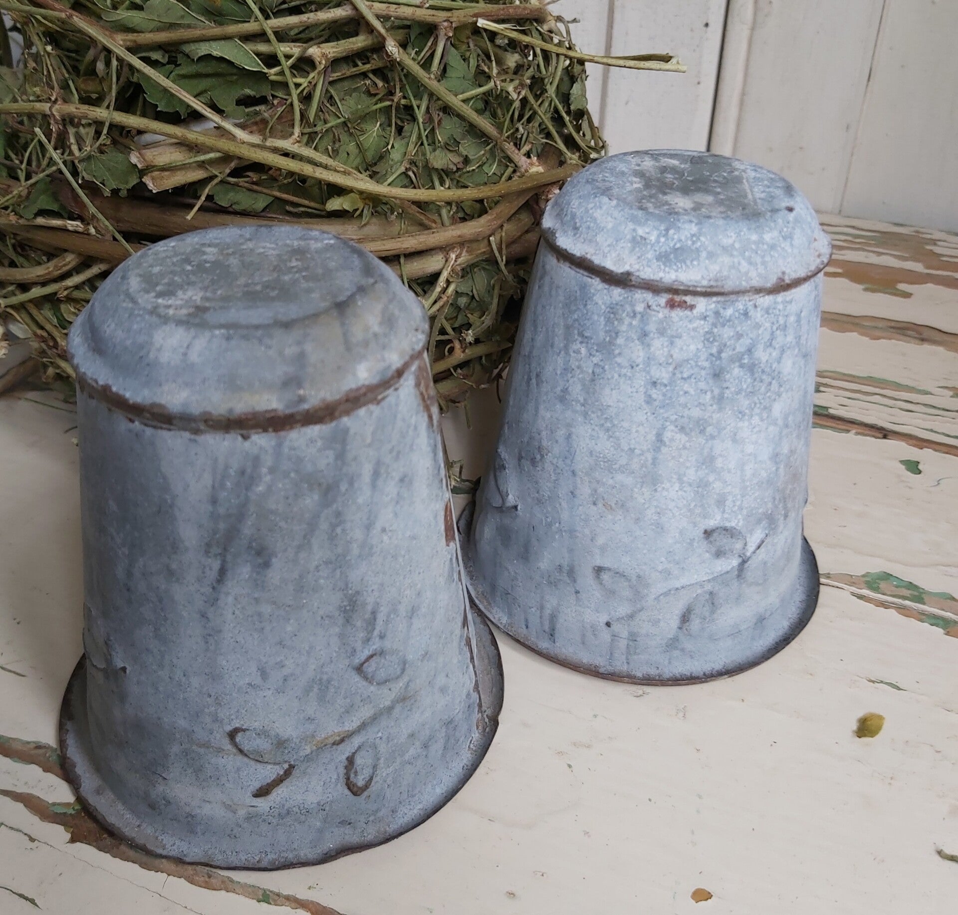 Mooi 'bewerkt' zinken potje.