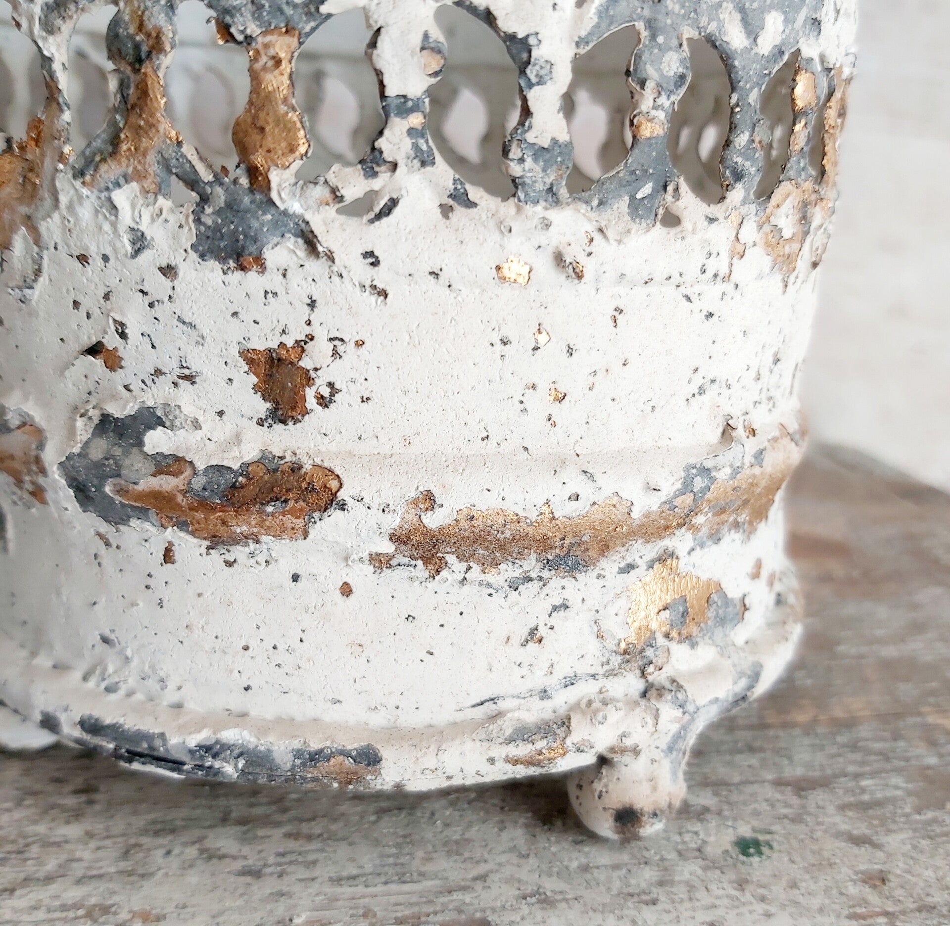 Metalen kandelaar met mooie patine.