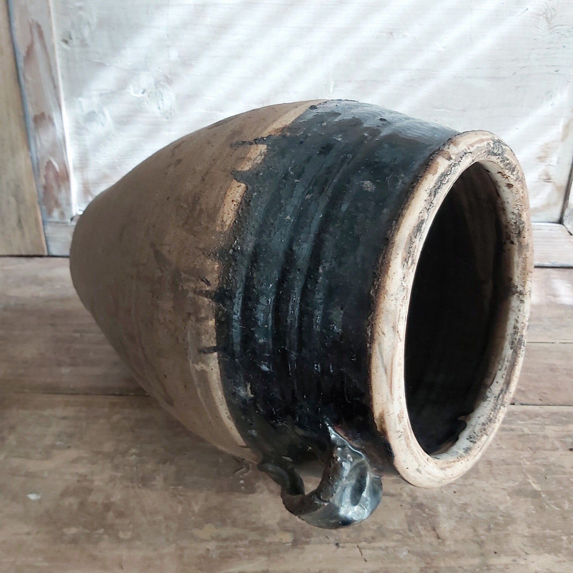 Antieke confitpot met mooie greepjes.